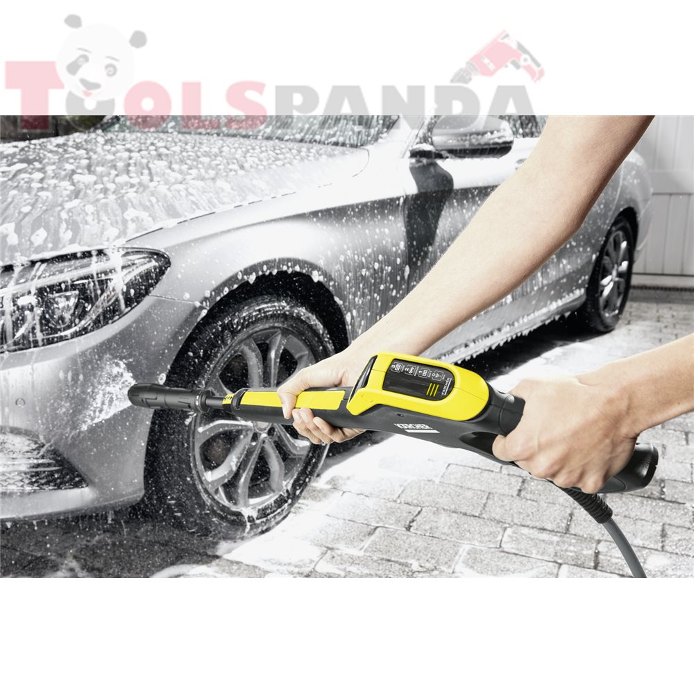 1. Пистолет с пусков механизъм Power Control с Quick Connect и струйник - Пистолет за високо налягане с LCD дисплей и бутони за регулиране на налягането или дозиране на почистващия препарат. Full Control: дисплеят показва направените настройки Адаптер за лесно свързване на маркуч с високо налягане и аксесоари;